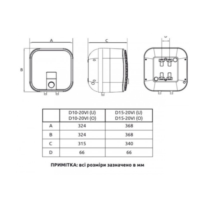 - Форма бойлера:Квадратный