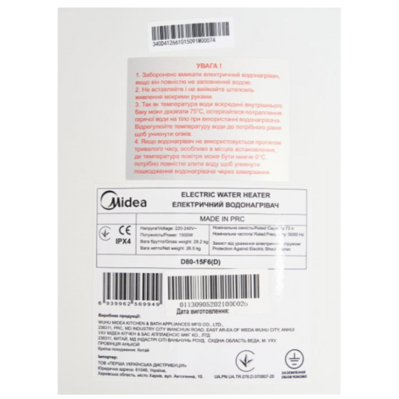 Теги: Бойлер MIDEA D06-15A (U)