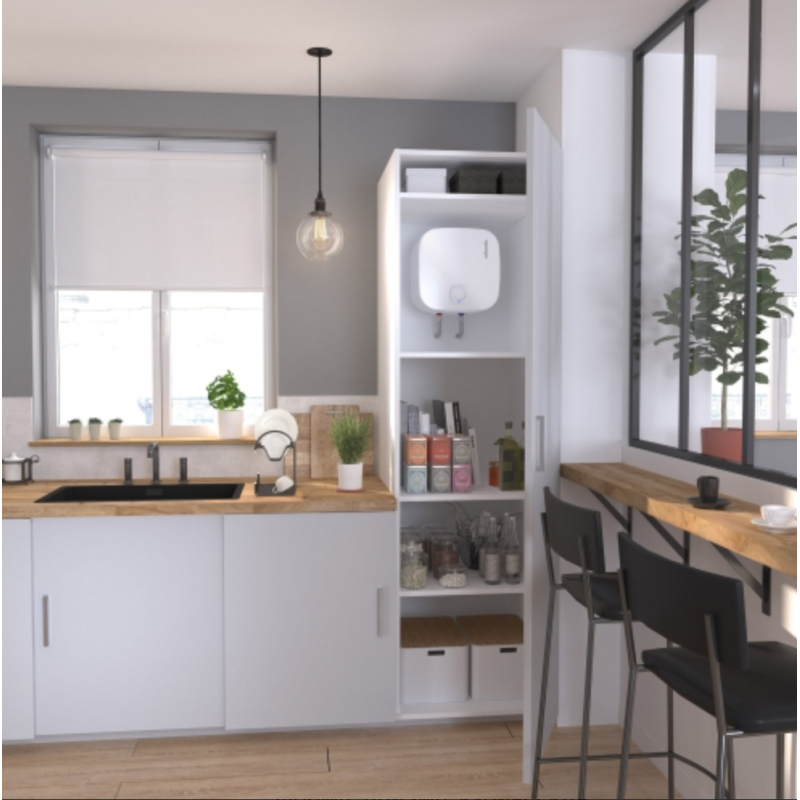 Элегантный водонагреватель Nanto представлен в корпусе кубической формы. Имеет следующие габаритные размеры: высота – 387 мм, ширина – 360 мм, глубина – 262 мм, внутренний объём бака – 15 л. Вес – 8,1 кг. Рабочее давление – 8 бар.