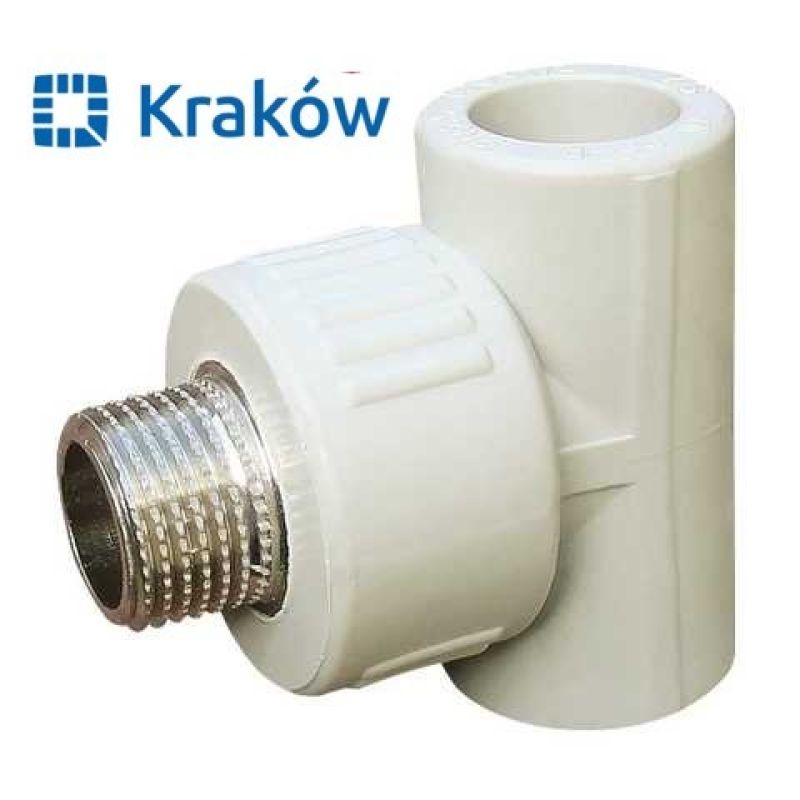 Трехсторонний полипропиленовый фитинг для подсоединения к полипропиленовому трубопроводу компонента инженерной системы с резьбовым подключением. Резьба фитинга – наружная трубная.