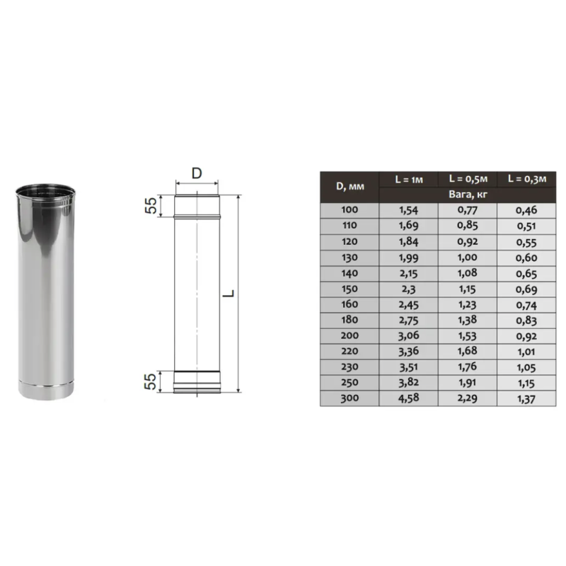 - Модель:Труба Versia-Lux для дымохода 0,3 м нерж ø130 мм (0,8 мм)