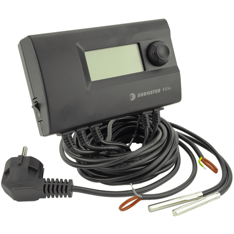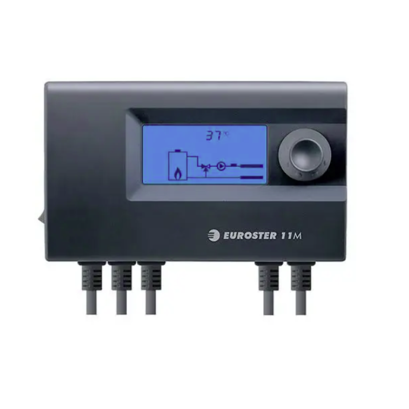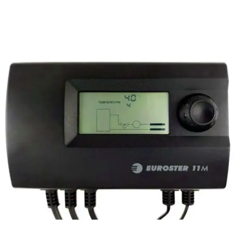 Euroster 11М это электронный, программируемый контроллер, предназначенный для взаимодействия со смесительным клапаном с сервоприводом и контурным насосом Ц.О. Сервопривод смесительного клапана должен быть оснащен конечными выключателями.