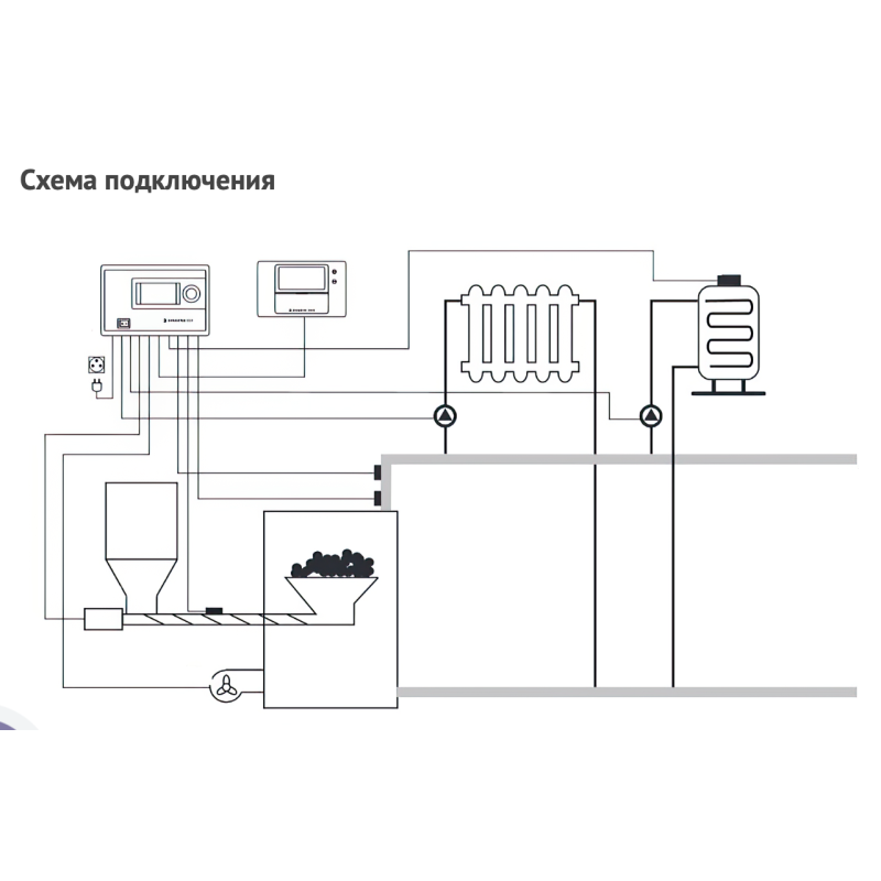 Поддерживает заданную температуру котла, управляя продувкой и работой питателя.