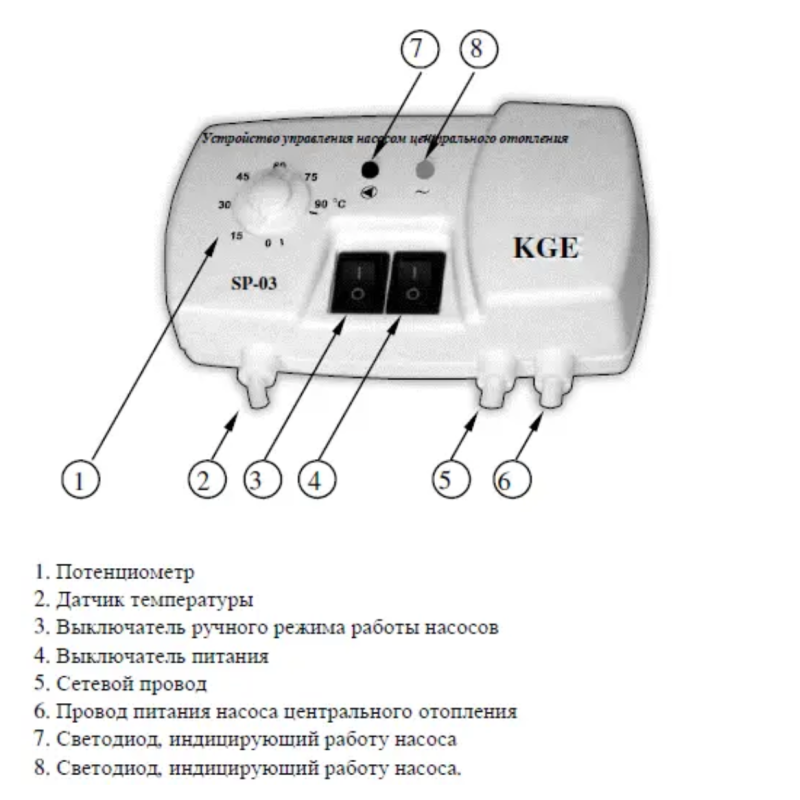 Усторойство дает возможность регулировать температуру включения и выключения насоса