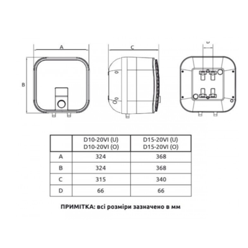 - Форма бойлера:Квадратний