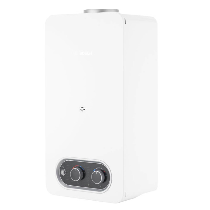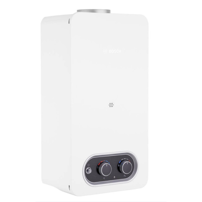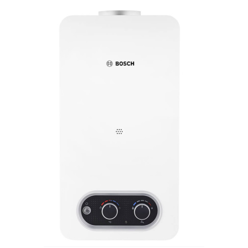 Газовий проточний водонагрівач Bosch Therm 4000 T4004 10L 23 Low NOx - сучасна модель, розроблена відповідно до актуальних європейських вимог екодизайну. Прилад поєднує знижені викиди оксидів азоту Low NOx з високим класом енергоефективності A, забезпечуючи екологічну та економічну експлуатацію. Модель працює з відкритою камерою згоряння та використовує природну тягу. Розпалювання пальника здійснюється автоматично від батарейок. Водонагрівач має максимальну продуктивність 10 л/хв, працює з номінальною тепловою потужністю 17,4 кВт і мінімальною потужністю 7,9 кВт, споживаючи до 2,1 м³ газу на годину. Допустимий робочий тиск води становить від 0,25 до 12 бар, а керування здійснюється механічно - Wi-Fi не передбачено.