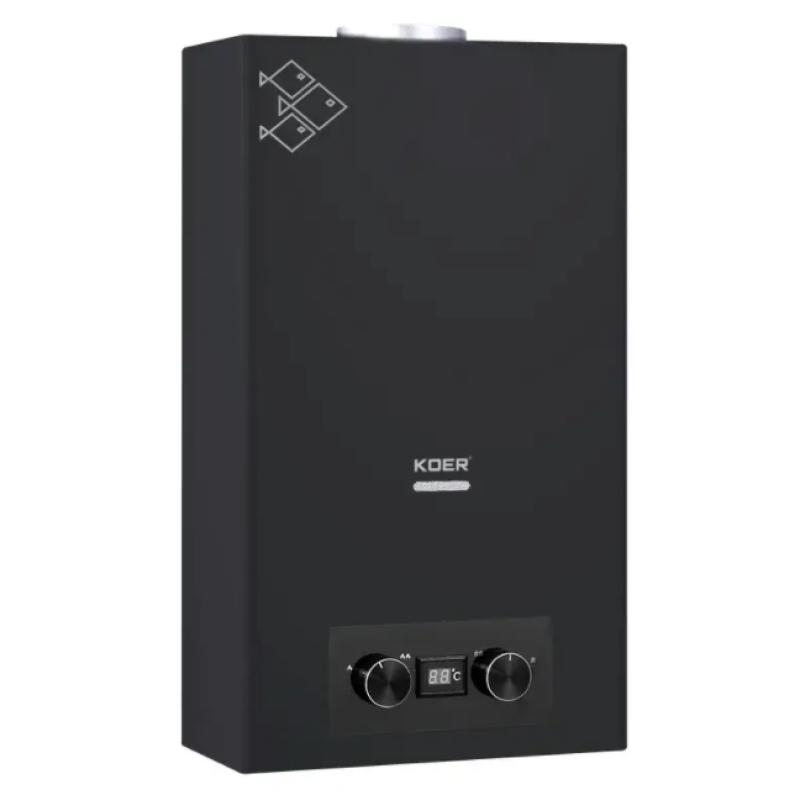 Колонка газова KOER KWH.G0110 - пристрій для нагрівання проточної води, що використовує природний газ як джерело енергії. До пристрою підводяться труби подачі газу та холодної води. На виході із труби йде гаряча вода (при включенні крана). Висока якість складання, електронний дисплей, контроль димовидалення та наявності полум'я, захист від перегріву – все це реалізовано у конструкції виробу.