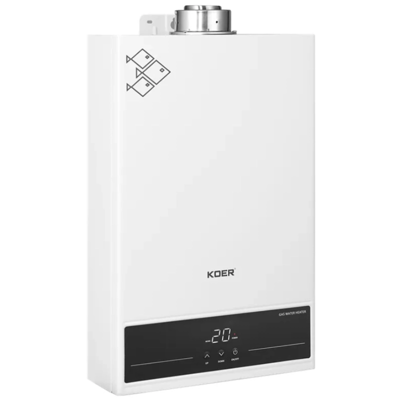 Газова колонка KOER KWH.G0312 TURBO WHITE - це турбована модель продуктивністю 12 літрів за хвилину, призначена для швидкого та стабільного нагрівання води. Вона відрізняється високою якістю складання та сучасним дизайном.