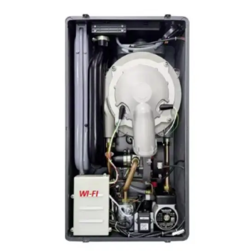 Конденсаційна ефективність та Wi-Fi управління Berte Gray – це сучасний конденсаційний газовий котел з потужністю 24 кВт, здатний опалювати приміщення до 200 м² та забезпечувати повноцінне гаряче водопостачання. Основна особливість – вбудований модуль Wi-Fi, який дозволяє керувати котлом віддалено через смартфон із будь-якої точки світу.