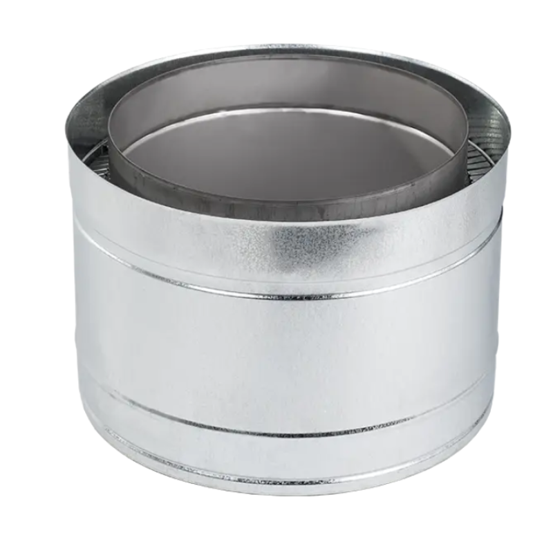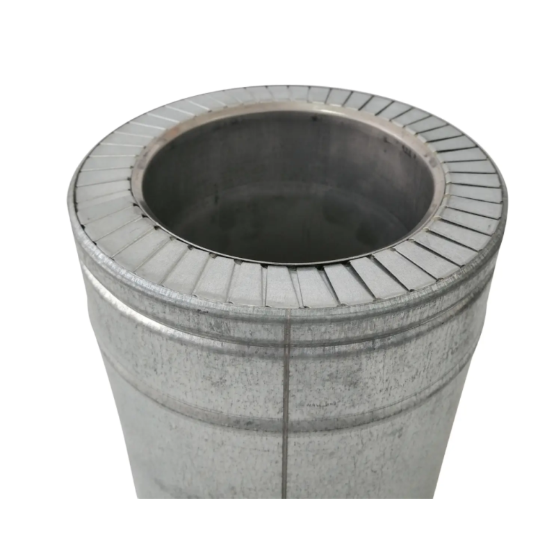 Складається з двох труб - внутрішньої з жаростійкої нержавіючої сталі та зовнішньої з оцинкованої сталі. Як утеплювач використовується базальтове волокно товщиною 30-35 мм, що витримує температурний режим до 1000°C.