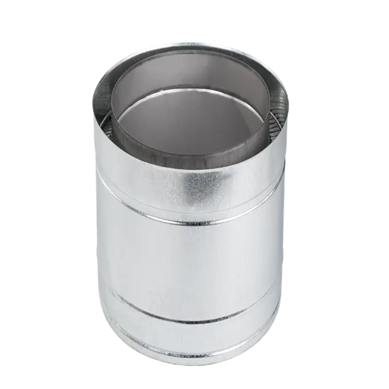Складається з двох труб - внутрішньої з жаростійкої нержавіючої сталі та зовнішньої з оцинкованої сталі. Як утеплювач використовується базальтове волокно товщиною 30-35 мм, що витримує температурний режим до 1000°C.