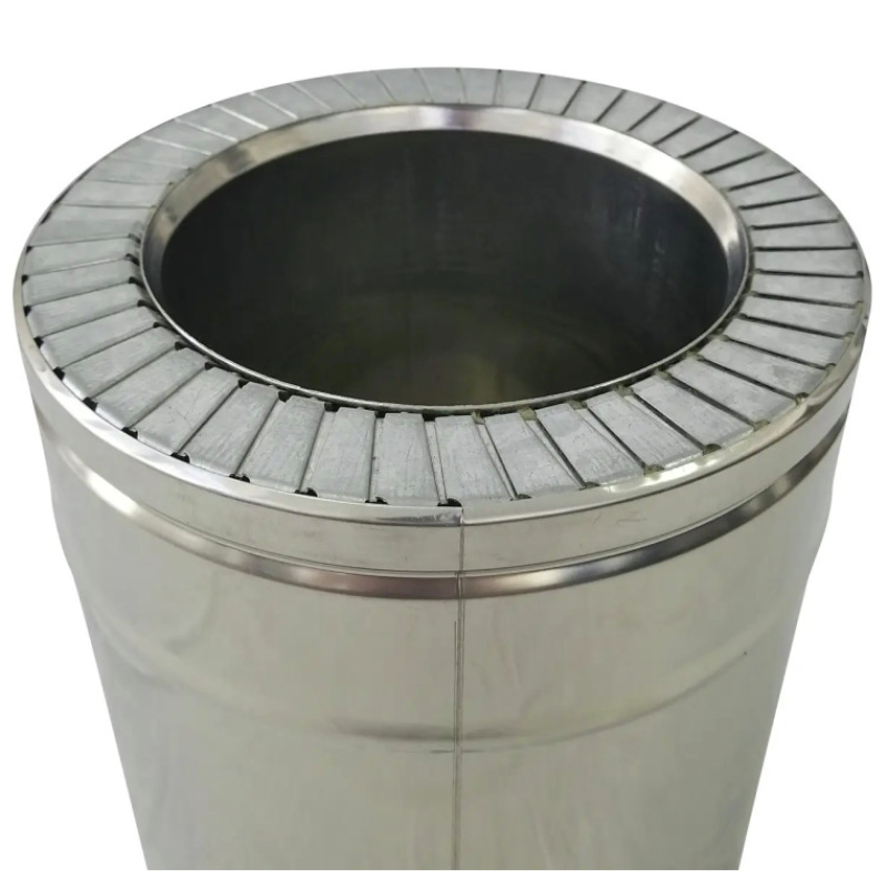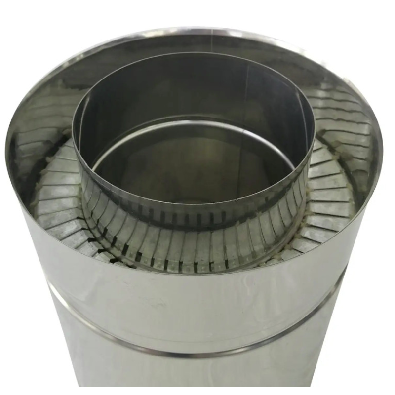 Конструкція: Складається з двох труб – внутрішньої та зовнішньої з жаростійкої нержавіючої сталі. Як утеплювач використовується базальтове волокно товщиною 30-35 мм, що витримує температурний режим до 1000°С.
