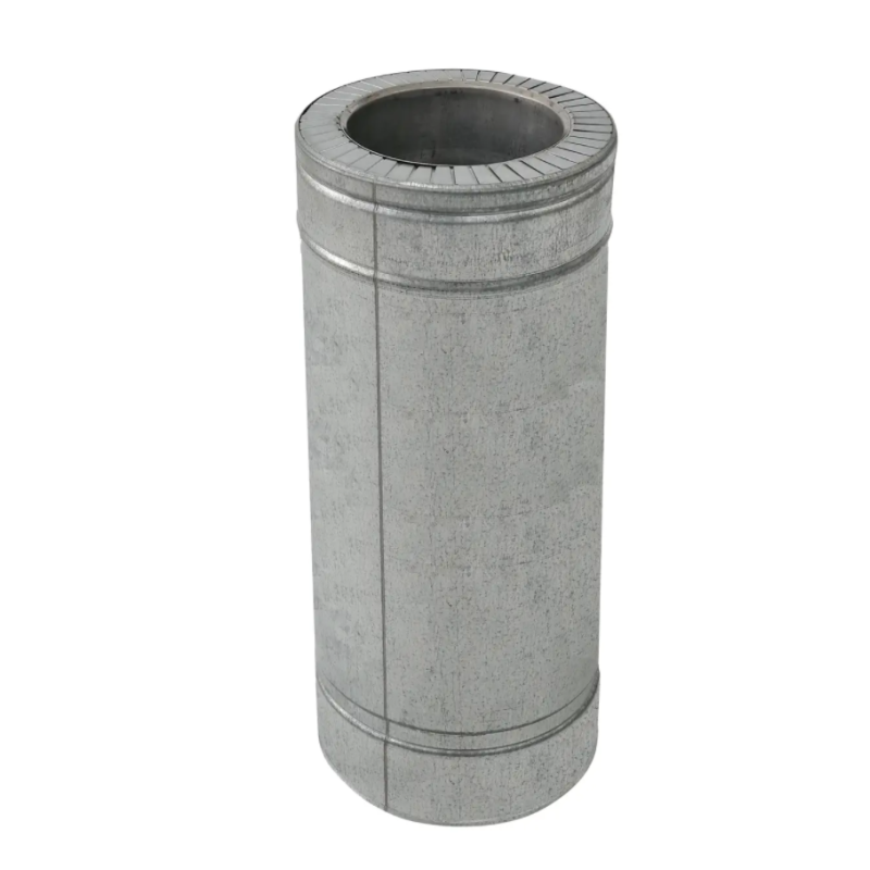 Складається з двох труб - внутрішньої з жаростійкої нержавіючої сталі та зовнішньої з оцинкованої сталі. Як утеплювач використовується базальтове волокно товщиною 30-35 мм, що витримує температурний режим до 1000°C.