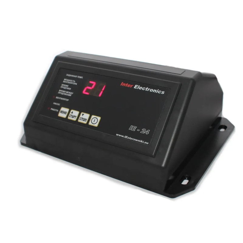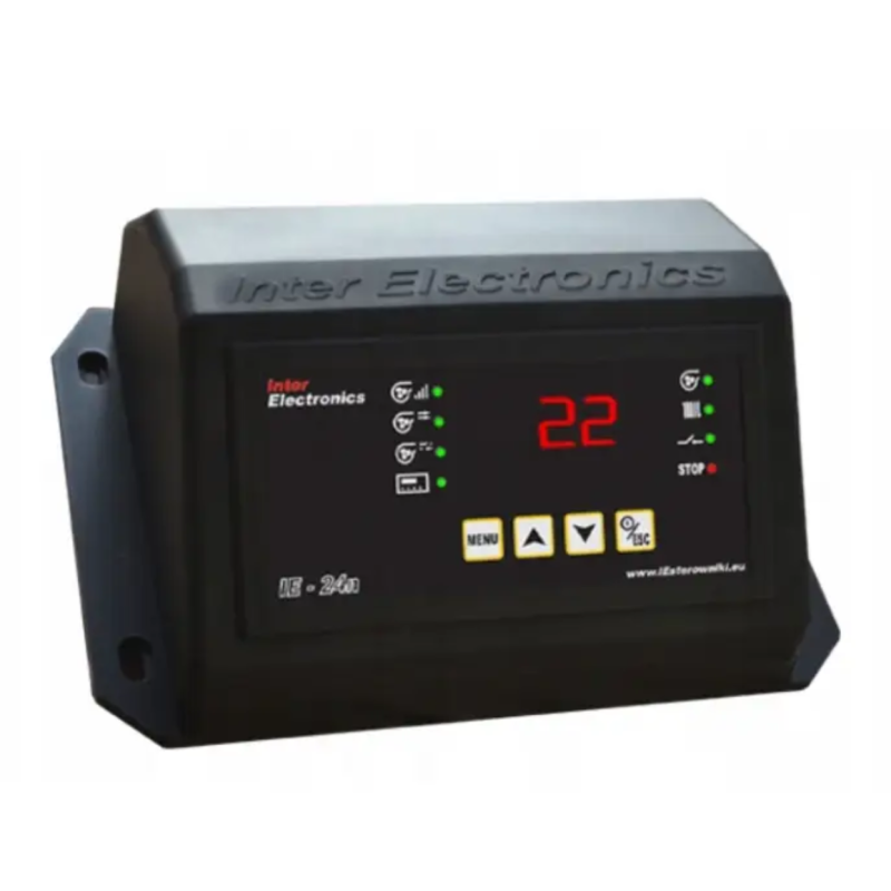 Контролер Inter IE-24nZ – це вдосконалена модель автоматики польського виробництва. Обладнаний багатофункціональним та дуже потужним процесором. Модель IE-24nZ має металевий корпус. Керує роботою твердопаливних котлів із ручним завантаженням. Його завдання – за допомогою вентилятора підтримувати виставлену температуру на виході опалювального пристрою. Добре працює з шахтними котлами вітчизняного виробництва, має підвищену стійкість до перепадів напруги. Основні регулювальні функції – керування нагнітальною турбіною, циркуляційним насосом. Командо-контролер додатково оснащений входом, до якого можна підключити термостат (INTER ELECTRONICS IE-20). За допомогою останнього користувач може підтримувати постійну температуру в приміщенні. Мікропроцесорний регулятор температури Inter IE-24n має якісний дисплей, що добре читається. Під час роботи забезпечує економічність палива до 35%. Зменшує підходи до нагрівального пристрою, значно збільшуючи інтервали горіння різних видів палива.