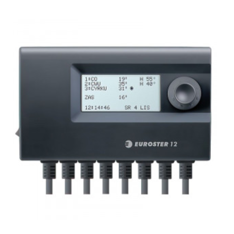 Електронний програмований тижневий контролер Euroster 12 призначений для керування роботою 3 пристроїв в опалювальній системі. Пристрій має три незалежні релейні виходи, до яких можна підключити насос опалення, насос ГВП, насос рециркуляції ГВП, насос теплої підлоги, вентилятор твердопаливного котла. Можливе встановлення будь-якого виходу в режим термостату, робота за часом. Всі параметри відображаються на графічному дисплеї, що легко читається, а управління дуже просте і здійснюється за допомогою обертової рукоятки з кнопкою.