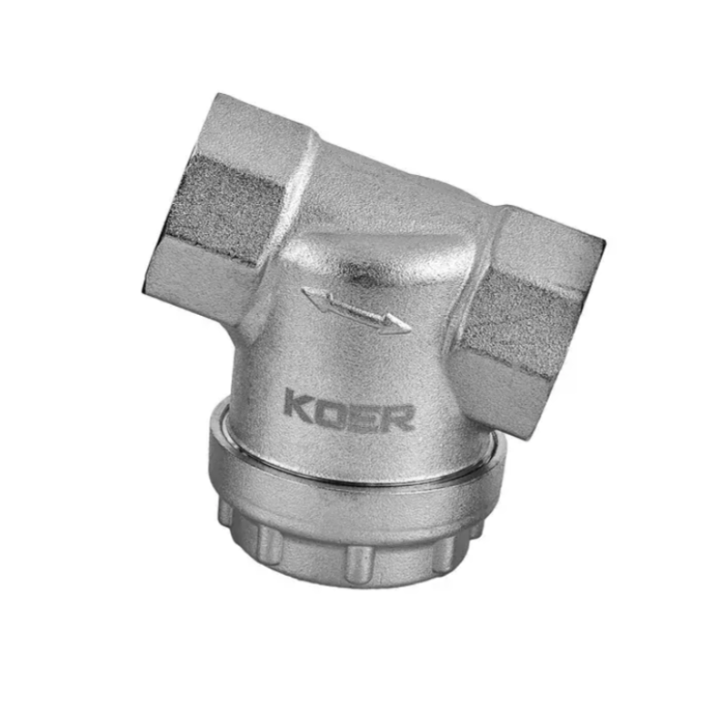 Універсальний фільтр грубого очищення KOER KR.F03 - ідеальний вибір для ефективного очищення великих об'ємів гарячої та холодної води. Він надійно захищає побутову техніку та сантехнічне обладнання від абразивних частинок, що містяться у водопровідній воді.