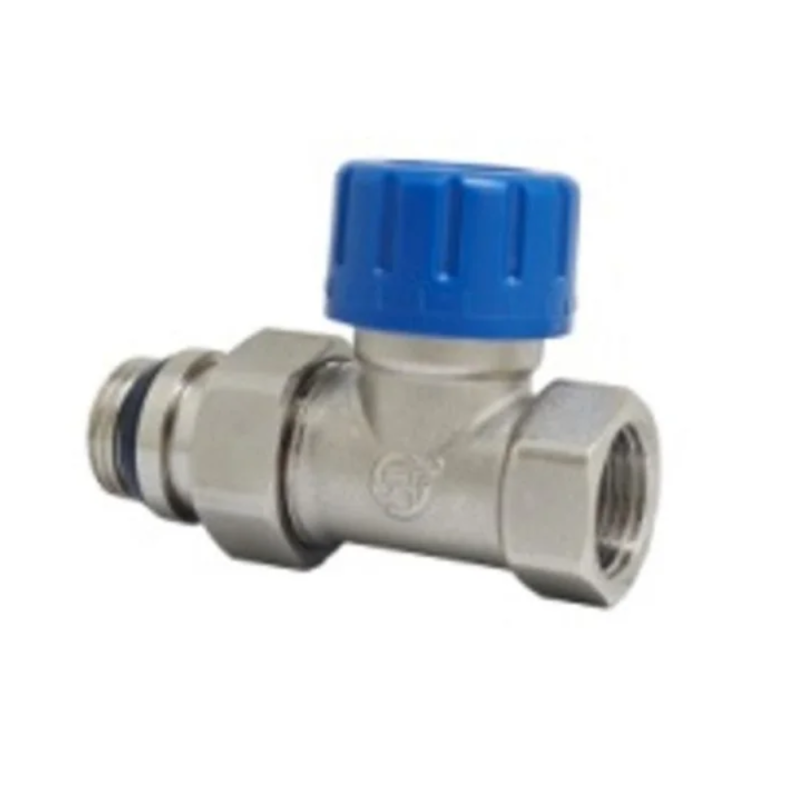 Прямий кран для ручного або автоматичного регулювання витрати теплоносія через опалювальний прилад. У другому випадку комплектується термостатичною головкою або сервоприводом, керованим кімнатним термостатом або контролером. Використання регулюючих кранів з термостатичною головкою дозволяє автоматично підтримувати задану температуру в приміщенні з точністю до 1 ℃. Наявність напівзгону дає можливість монтувати та демонтувати кран без демонтажу трубопроводу. Різьблення трубних приєднань – внутрішнє/зовнішнє, для термостатичної головки або сервоприводу – зовнішнє.
