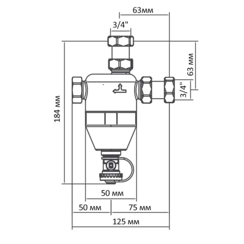 Фільтр Roho R680-075W забезпечує ефективне очищення великого об'єму води за короткий час. Пристрій призначений для підключення до системи опалення з діаметром 3/4 дюйма.