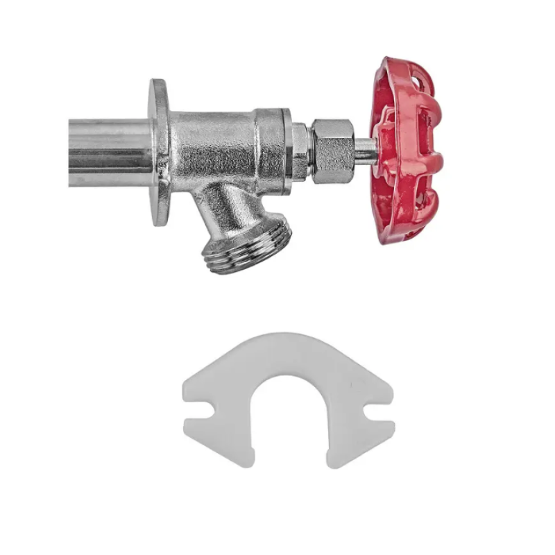Специальный внутренний механизм и удлиненный стержень переносят точку перекрытия воды в теплую зону стены, что предотвращает замерзание.