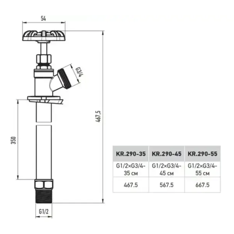 Садовый незамерзающий кран для полива KR.290-35, KR.290-45, KR.290-55