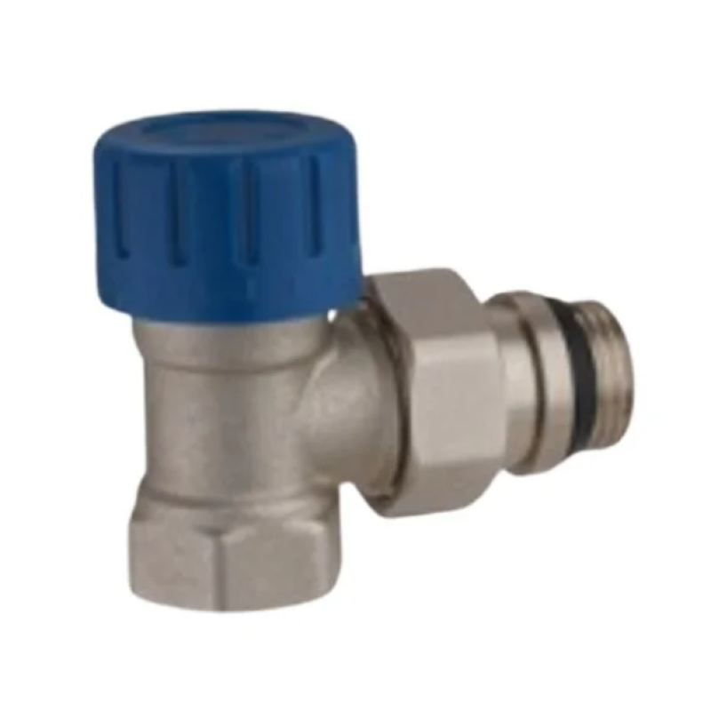Угловой кран для ручного или автоматического регулирования расхода теплоносителя через отопительный прибор. Во втором случае комплектуется термостатической головкой или сервоприводом, управляемым комнатным термостатом или контроллером. Использование регулирующих кранов c термостатической головкой позволяет автоматически поддерживать заданную температуру в помещении с точностью до 1 ℃. Наличие полусгона дает возможность монтировать и демонтировать кран без демонтажа трубопровода. Резьба трубных присоединений – внутренняя/наружная, для термостатической головки или сервопривода – наружная.