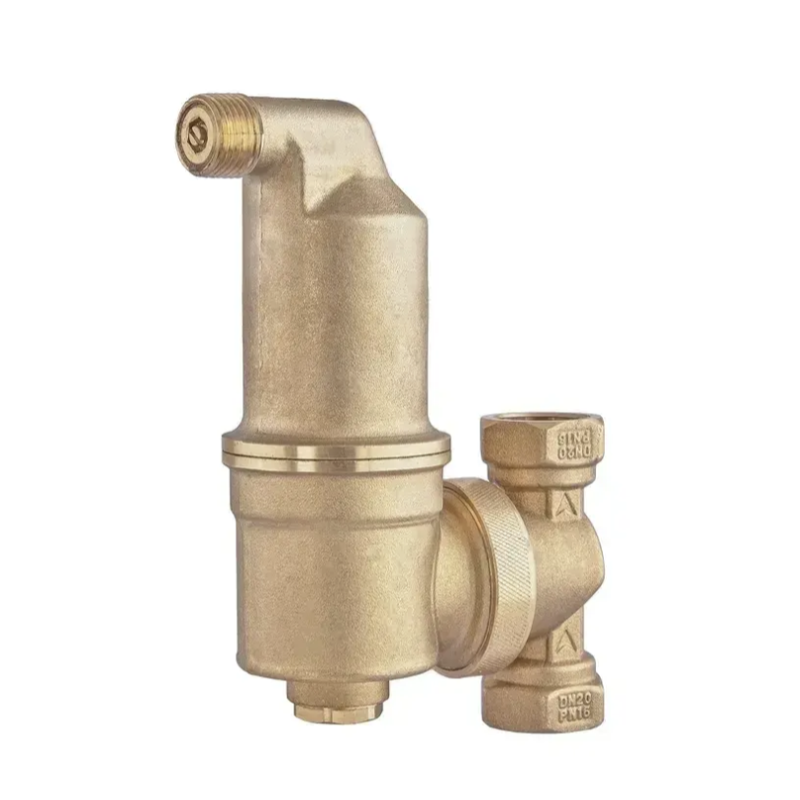 Устройство состоит из автоматического герметичного воздухоотводчика, медной спиральной сетки T2 и латунного корпуса с входным и выходным патрубками. При попадании потока теплоносителя в камеру сепаратора его скорость снижается, и микропузырьки ≥10 мкм формируют вихревое движение вокруг спиральной сетки. Это способствует их эффективному отделению от потока.