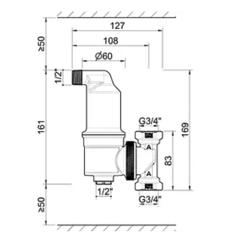 Воздушная камера диаметром 45мм и высотой ≥40мм предотвращает загрязнение уплотнений и исключает утечки через воздухоотводное отверстие.