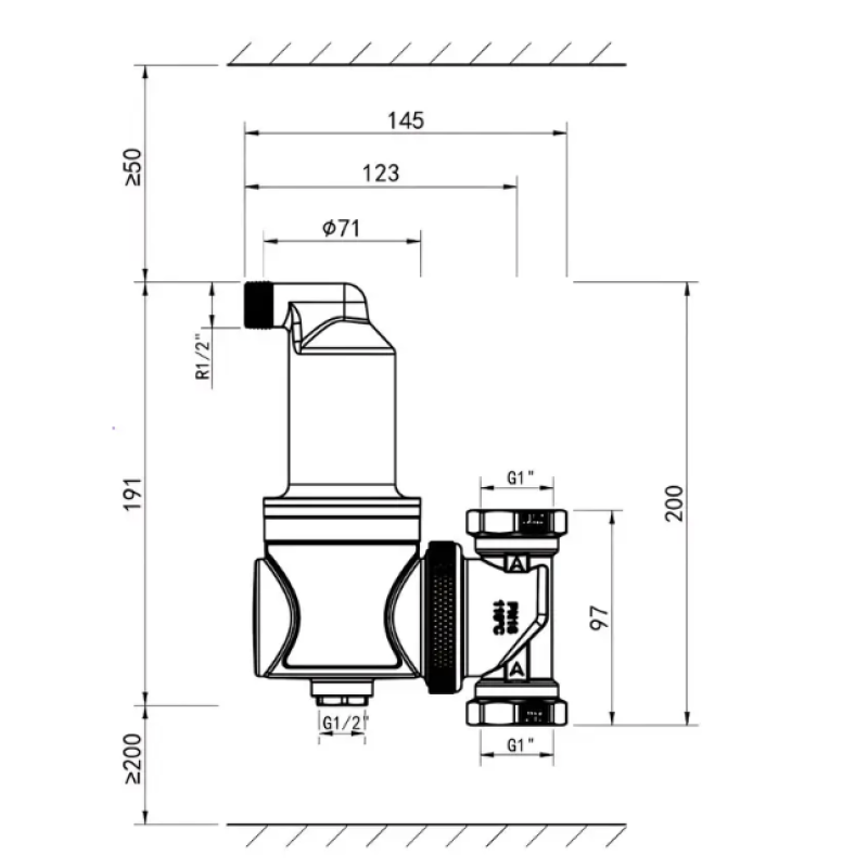 Воздушная камера диаметром 45мм и высотой ≥40мм предотвращает загрязнение уплотнений и исключает утечки через воздухоотводное отверстие.